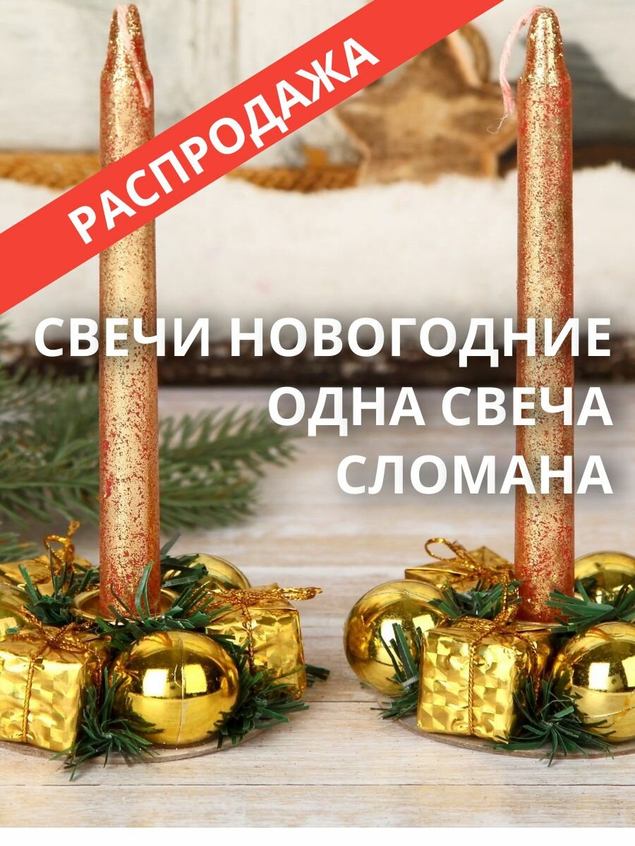 Свеча новогодняя с подсвечником "Шары и подарки" (набор 4 шт) 4х13,5х17 см, золото интересное: