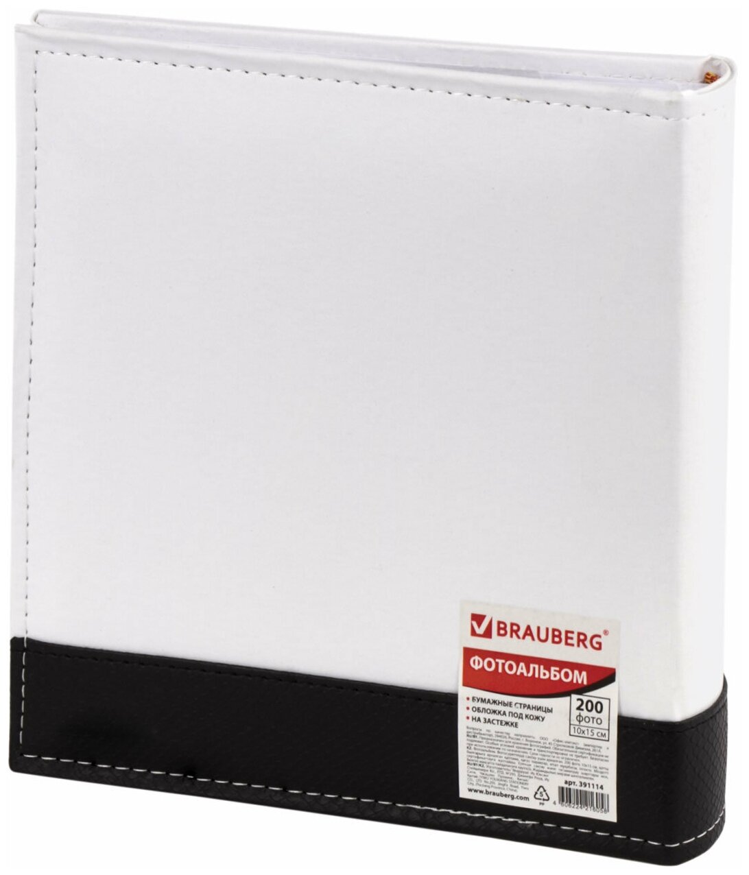 Фотоальбом BRAUBERG на 200 фото. 10х15 см, под замшу, бумажные страницы, бокс, белый с черным, 39111 И 4606224216058