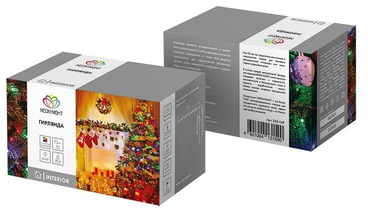 Гирлянда Твинкл-Лайт 20 м, темно-зеленый ПВХ, 160 LED, цвет мультиколор NEON-NIGHT 1 шт арт. 303-119