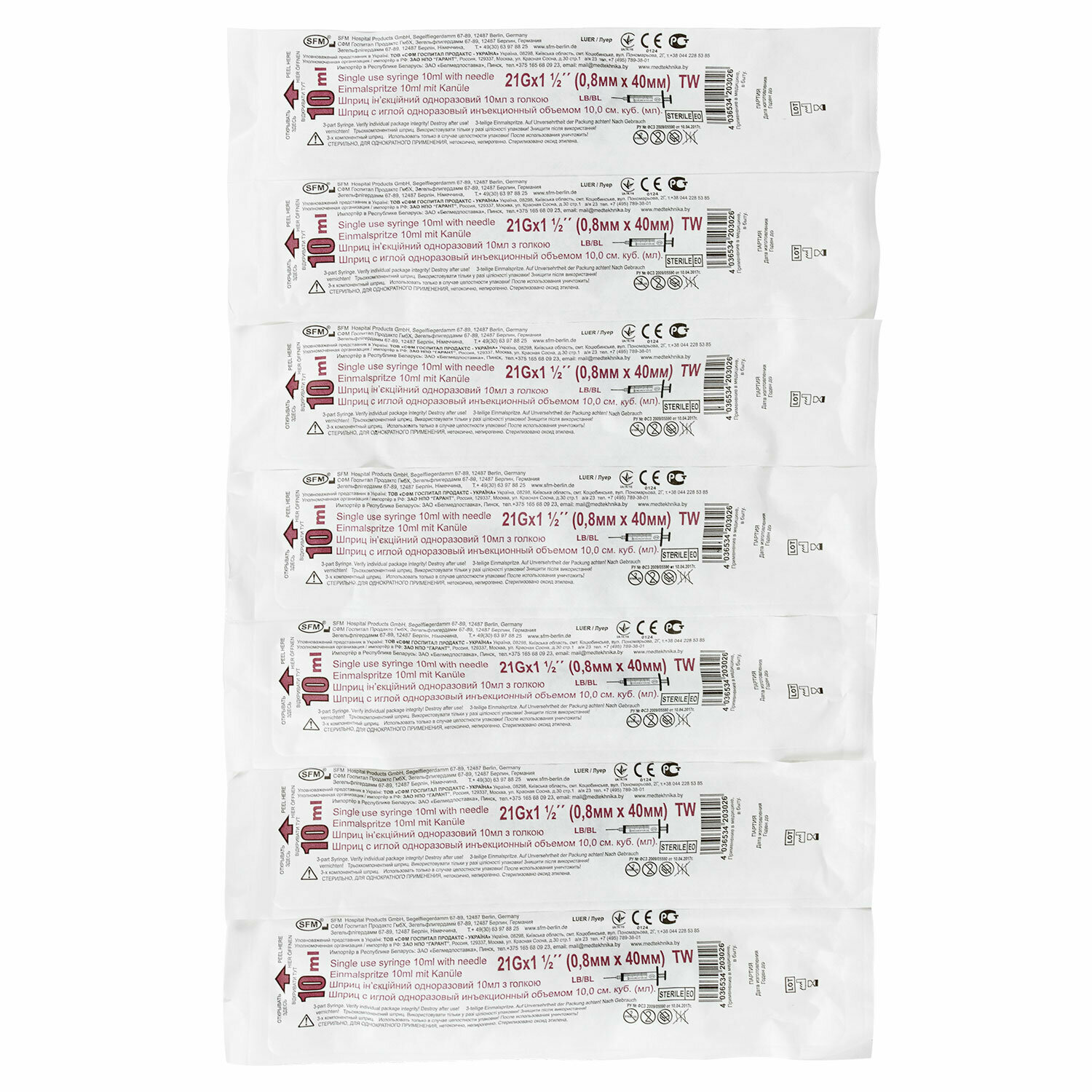 Шприц 10 мл. (3-х) SFM, Германия одноразовый стерилизованный с надетой иглой 0,80 х 40 - 21G (блистер) 100 шт.