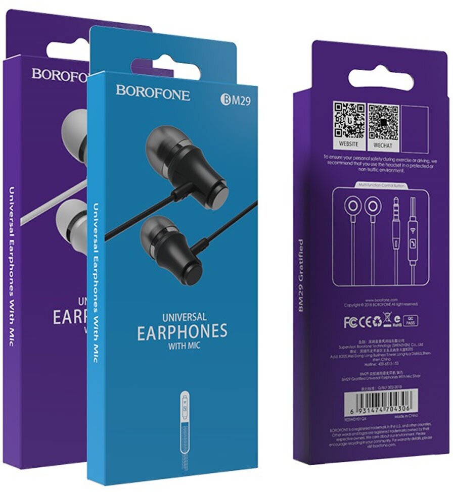 Гарнитура BOROFONE BM29 Gratified 3.5 мм, вставная, 1.2м (черный), шт BM29