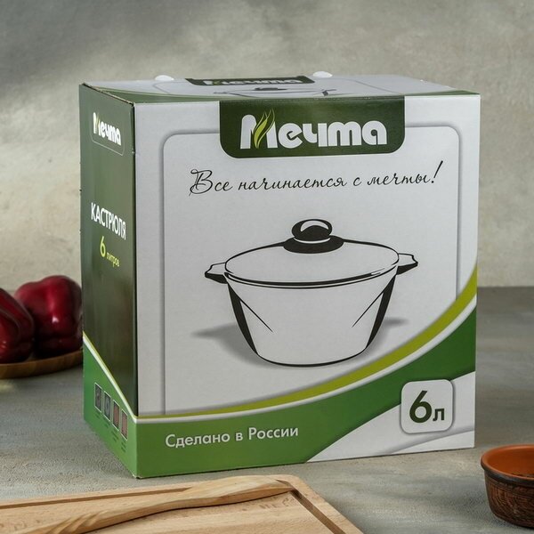 Кастрюля 6 л. антипригарная с крышкой мечта 46802