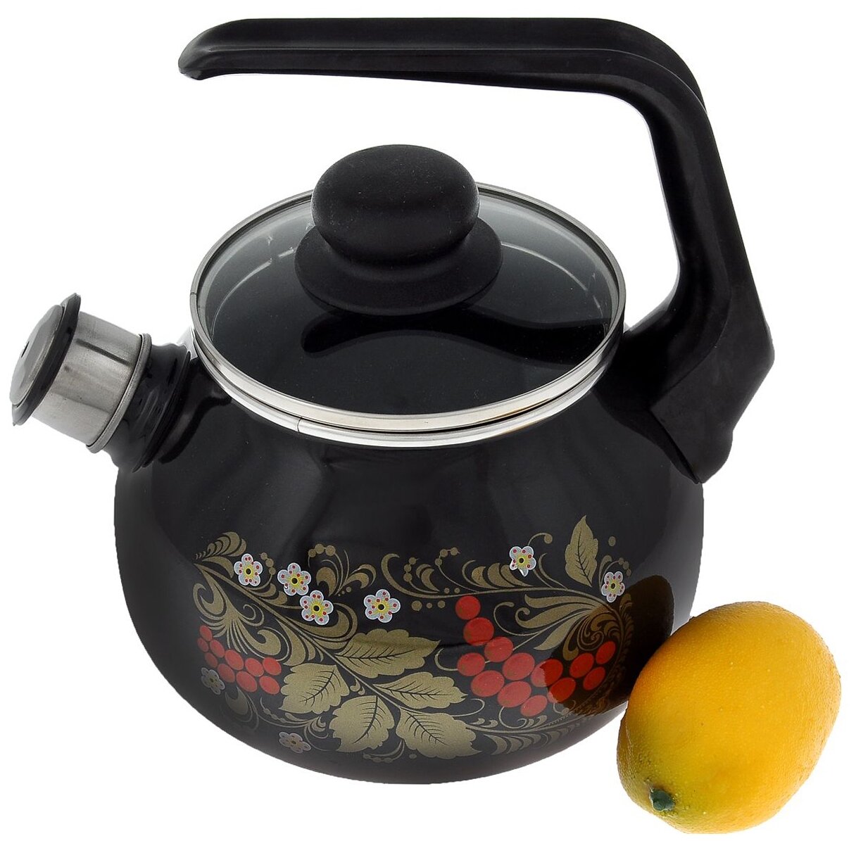 Чайник эмалированный со свистком "Рябина", 2 л, индукция, цвет чёрный