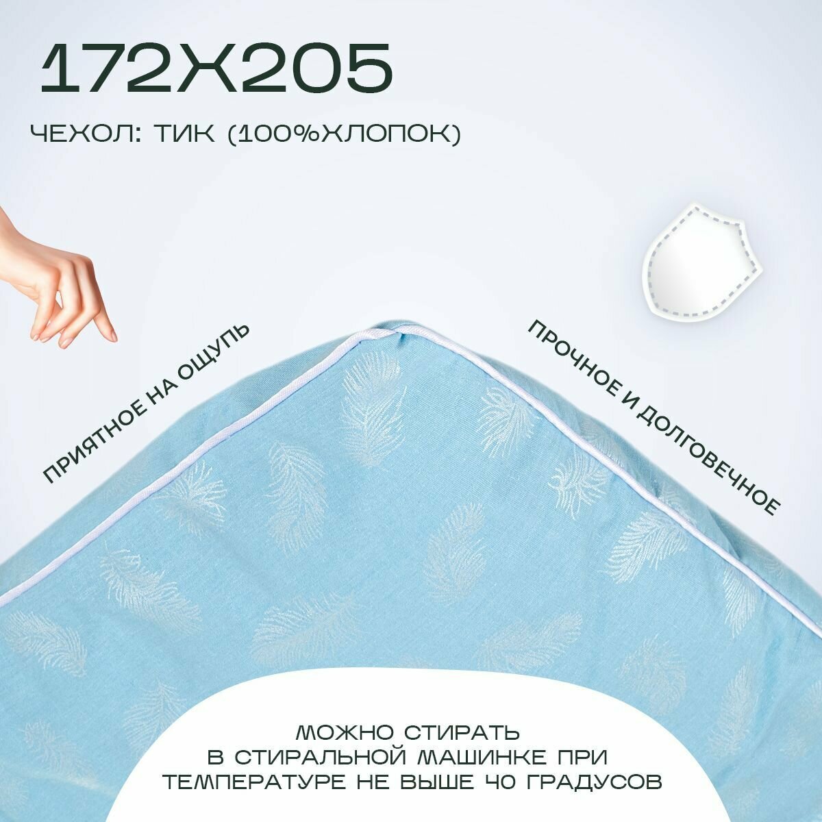 Одеяло всесезонное AlViTek (АльВиТек) 2-х спальное, 172х205, Тик/Лебяжий пух, Голубой с перьями, AALV-ОСЛП-20