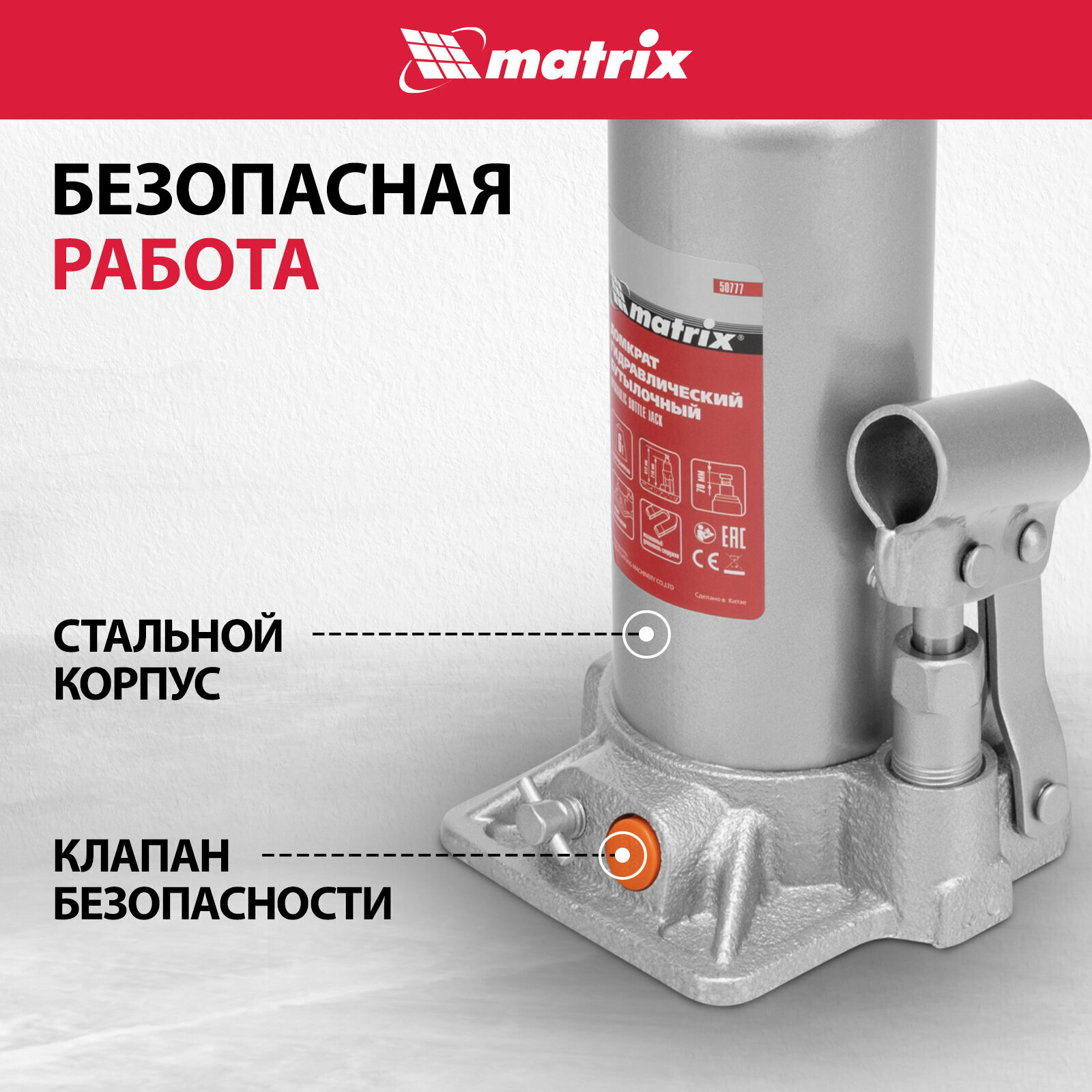Домкрат бутылочный гидравлический matrix 50777 (6 т) стальной