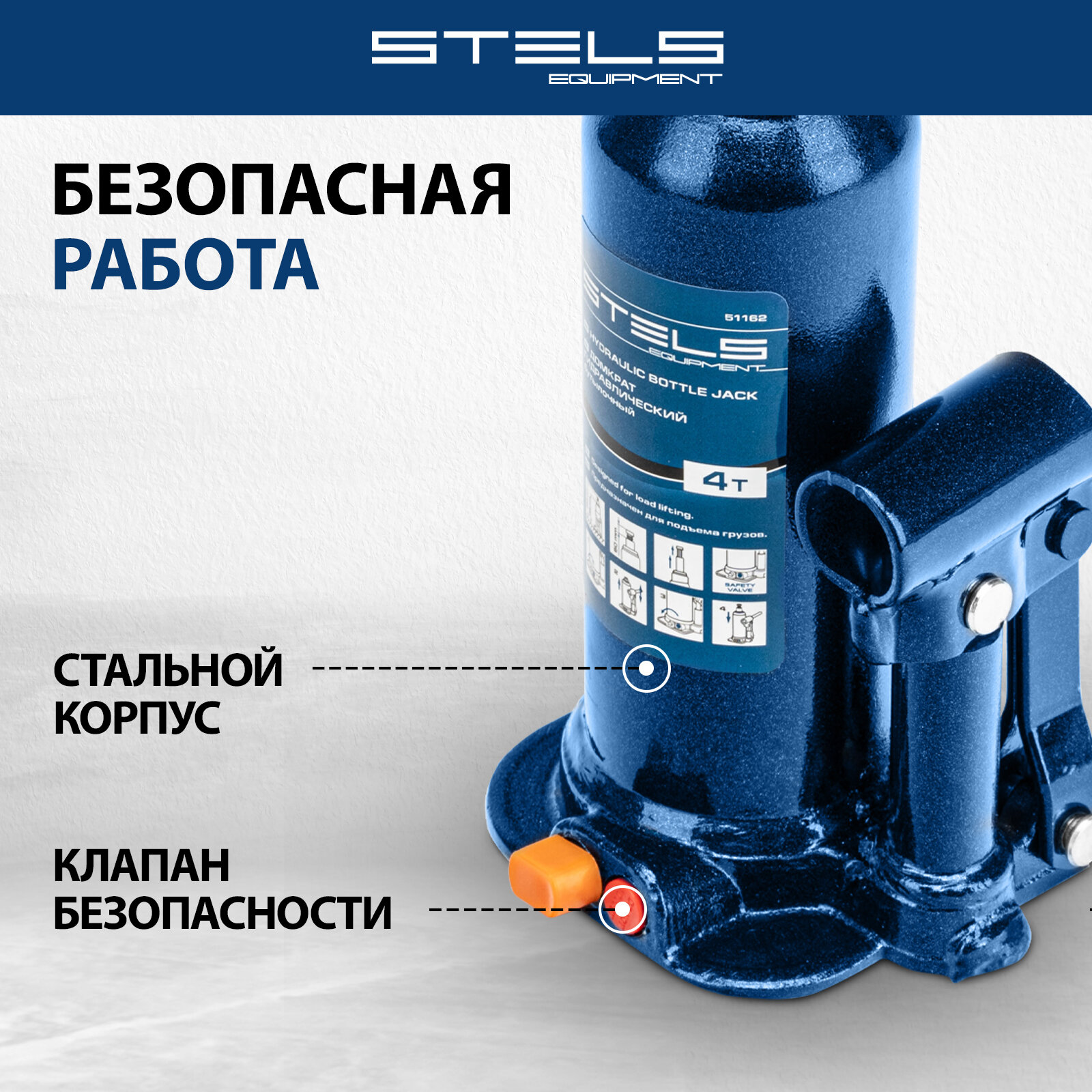 Домкрат бутылочный гидравлический Stels 51162 (4 т) синий