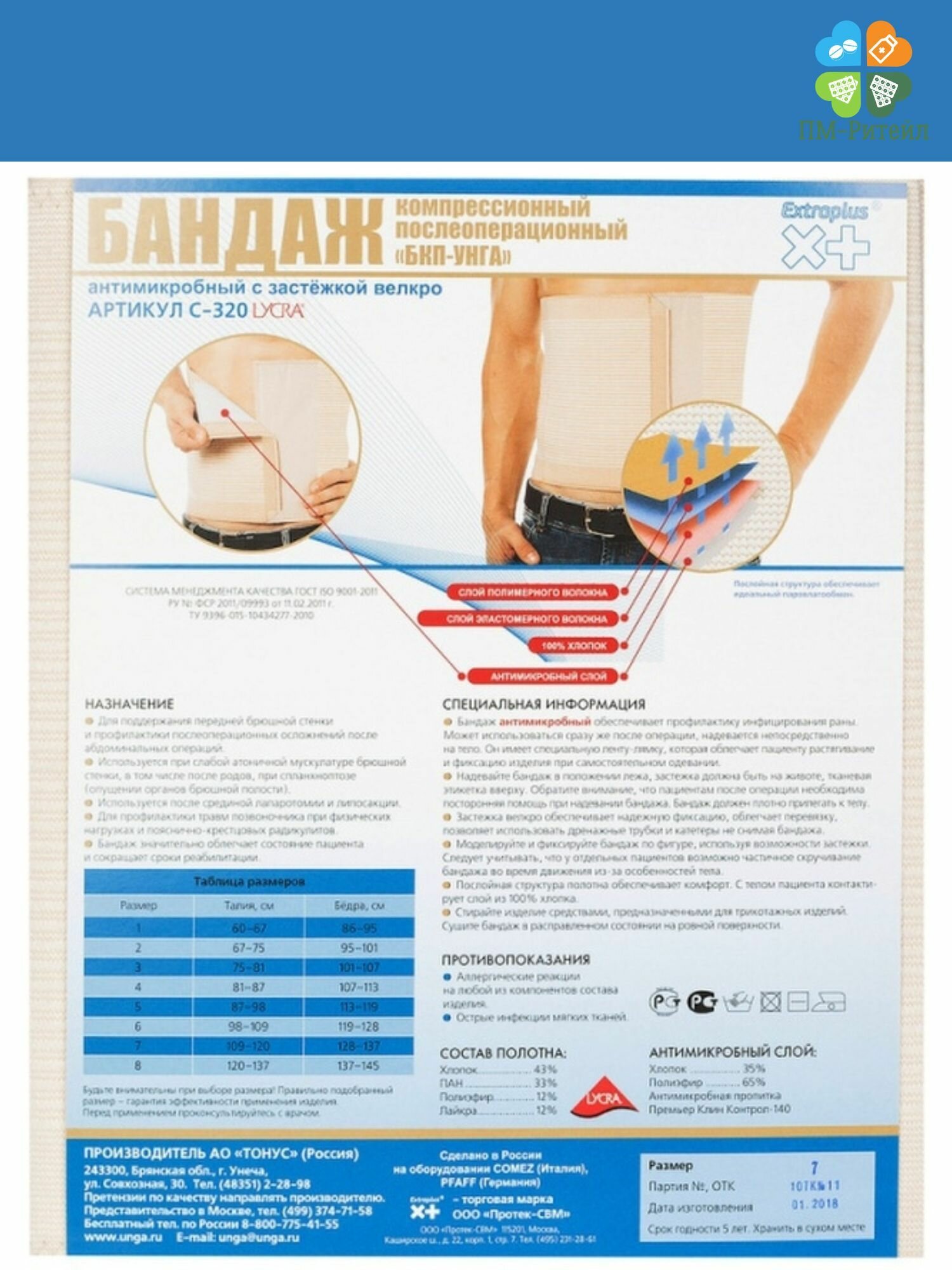 Бандаж компрессионный послеоперационный антимикробный бкп-УНГА Extraplus C-320, р.7