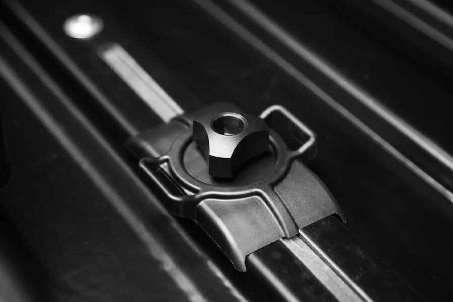 | Плюсы: | Качество пластика отличное, крышка фиксируется плотно. Металлический направляющие внутри плотно заклепаны в пластик. Бокс уверенно закрепляется на багажнике с помощью металлических скоб, минимально и допустимо "поигрывает" на неровностях дороги.