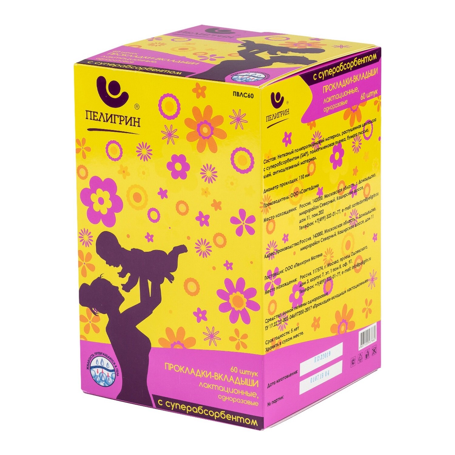 Пелигрин, Прокладки-вкладыши лактационные одноразовые с суперабсорбентом, набор 60 штук