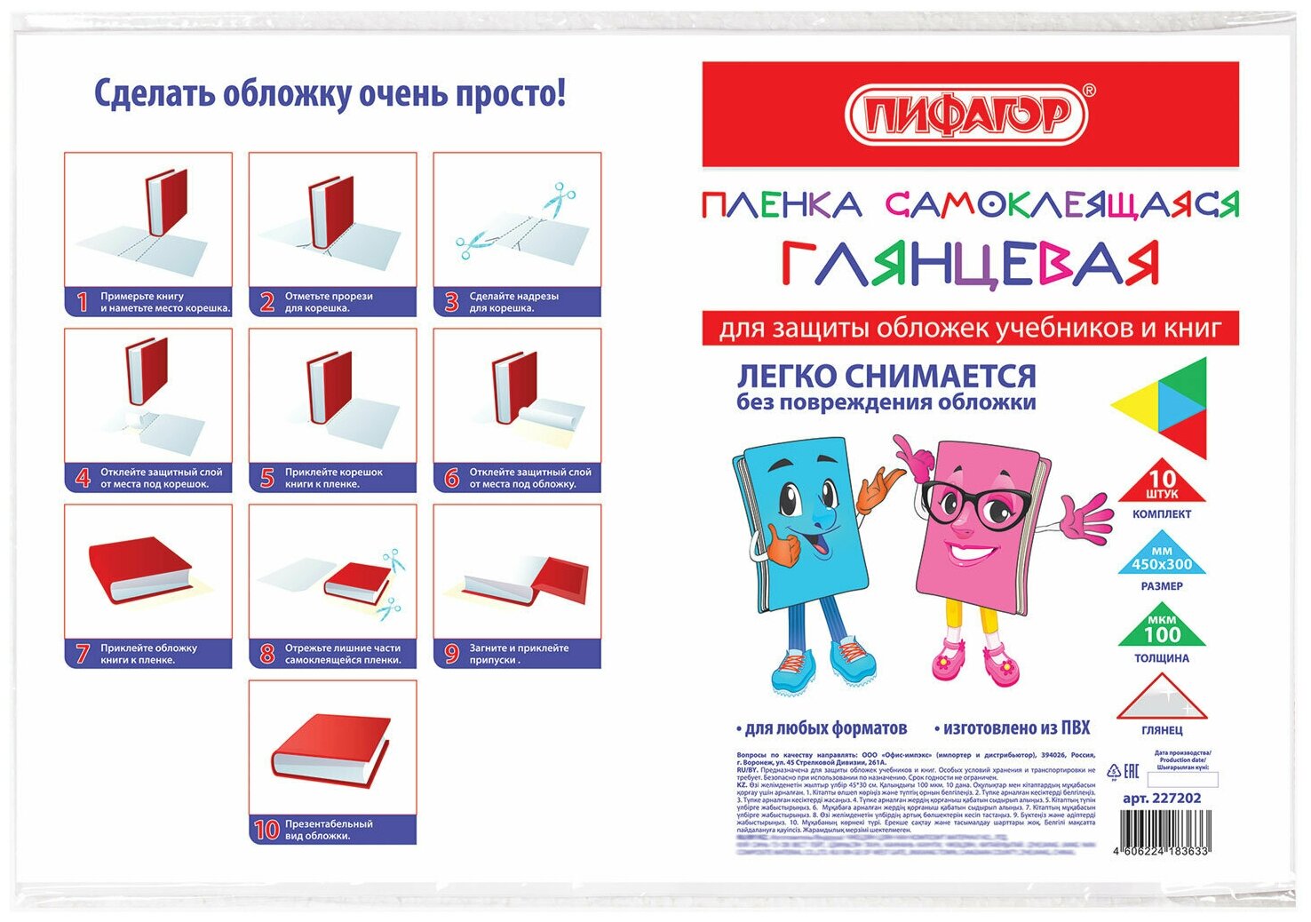 Купить Пленка самоклеящаяся Пифагор для учебников и книг 45*30 см, комплект 10 шт, глянцевая (227202)