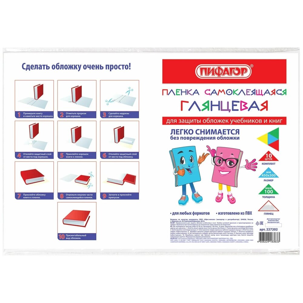 Пленка самоклеящаяся для учебников и книг, 45х30 см, комплект 10 шт., глянцевая, пифагор, 227202 В наборе: 1компл.