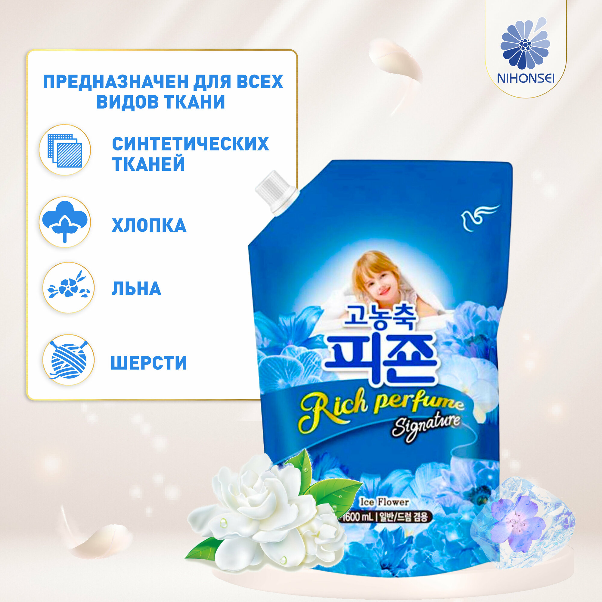 Кондиционер для белья Rich Perfume Signature Hi-Enriched Fabric Softener Ice Flower, PIGEON 1000 мл