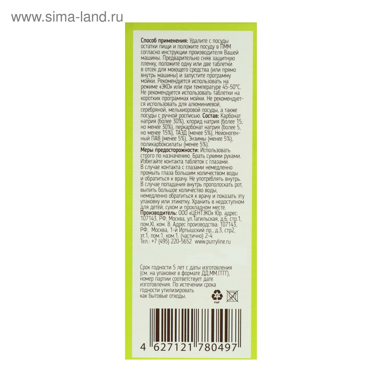 Таблетки для посудомоечных машин PURRY Total, 300 шт./В упаковке шт: 1