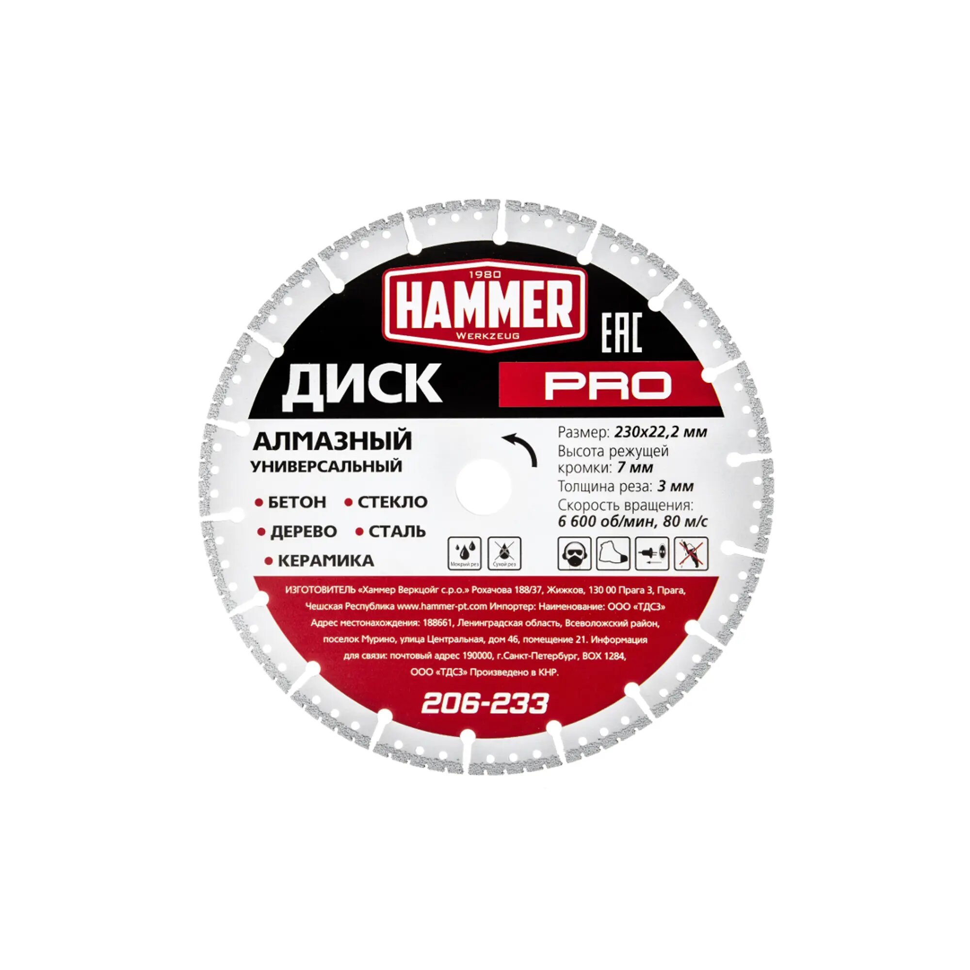 Диск алмазный Hammer PRO 206-233 Универсальный 230х22мм. интересное: