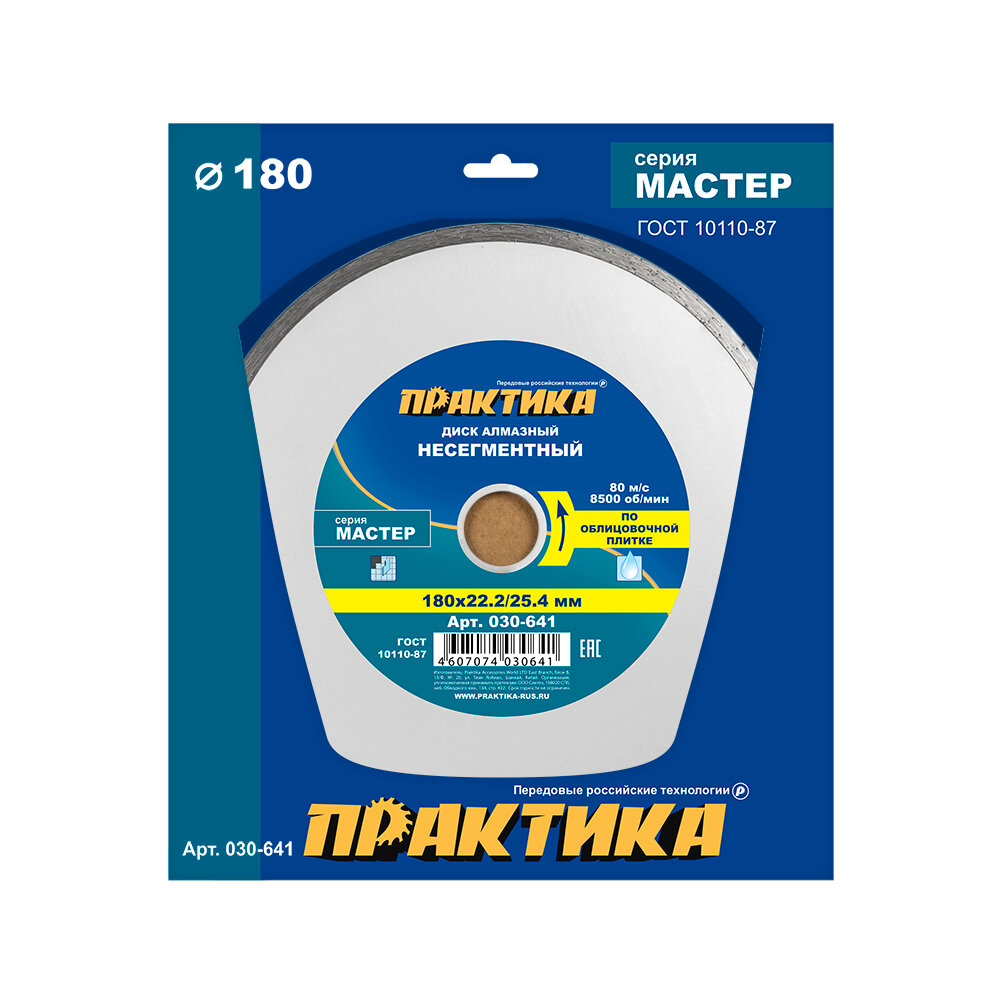 Диск алмазный несегментный ПРАКТИКА Мастер 030-641, 180 мм, 1 шт.