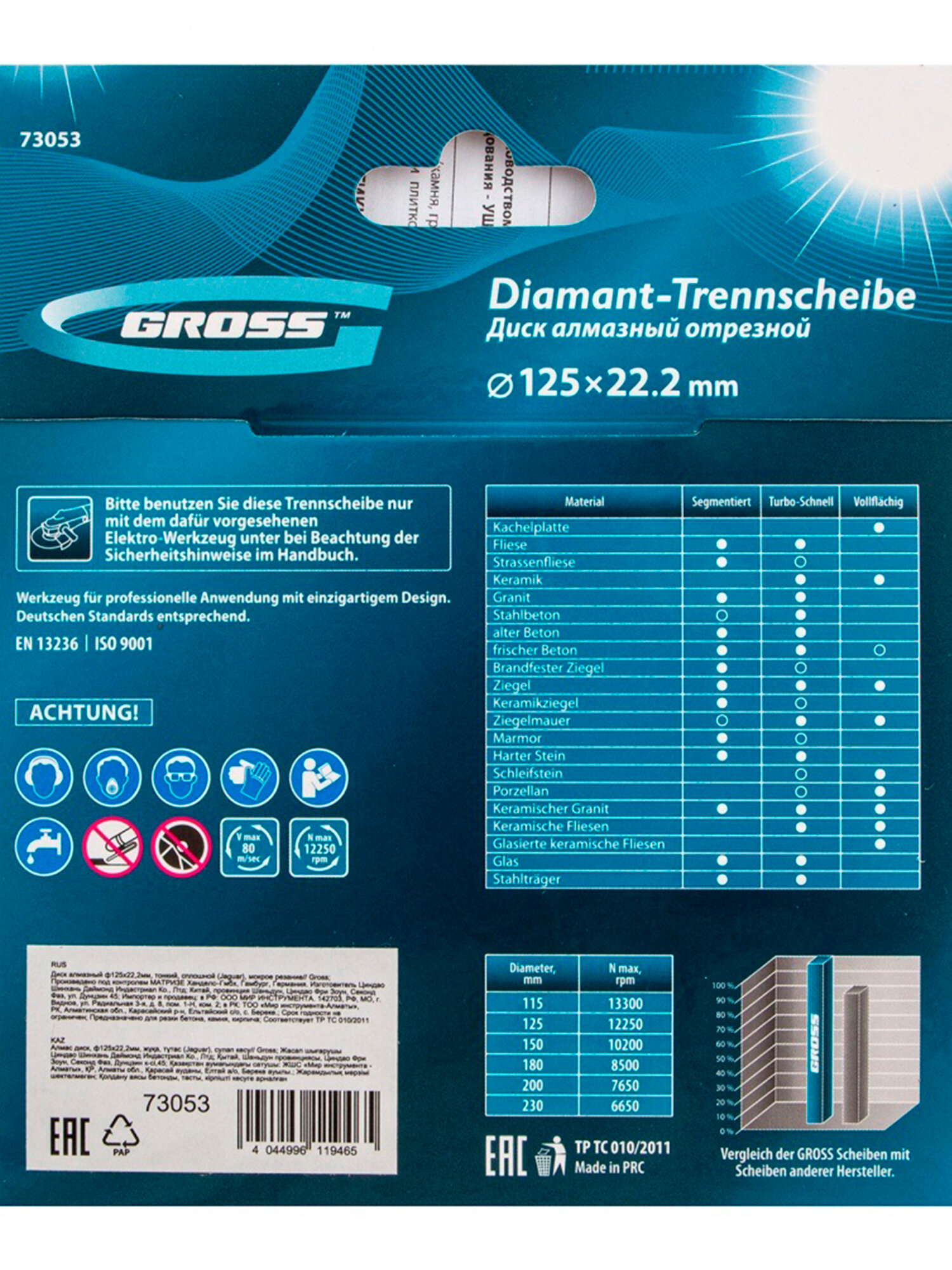 Диск алмазный отрезной Gross 73053, 125 мм 1