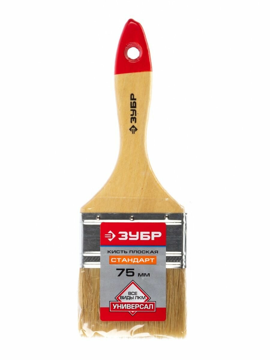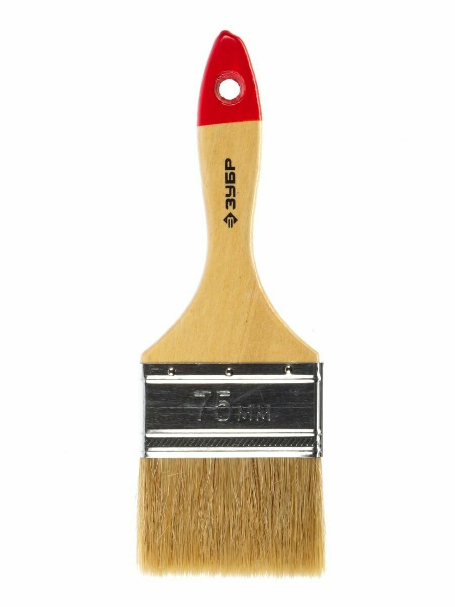 ЗУБР универсал 75 мм, 3'' светлая натуральная щетина, деревянная ручка, Плоская кисть, стандарт (4-01001-075)