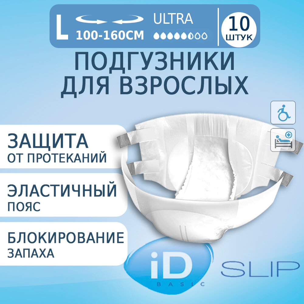 iD Подгузники для взрослых iD Slip Basic, размер L, 10 шт.