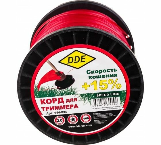 Корд триммерный на катушке DDE "Speed line" (звезда , 2,0ммх498м, красный)