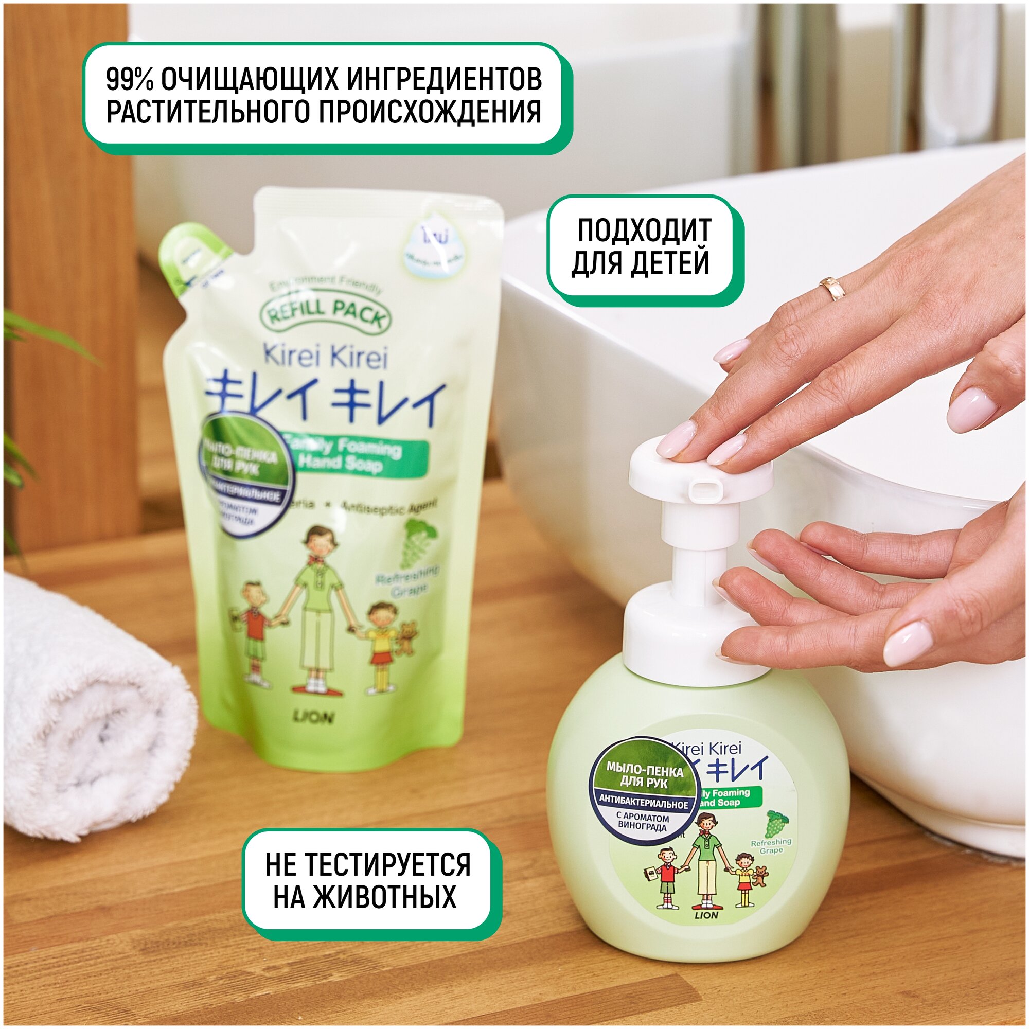 Купить LION Кирей-Кирей Жидкое мыло Антибактериальная пена для рук Виноград 200мл