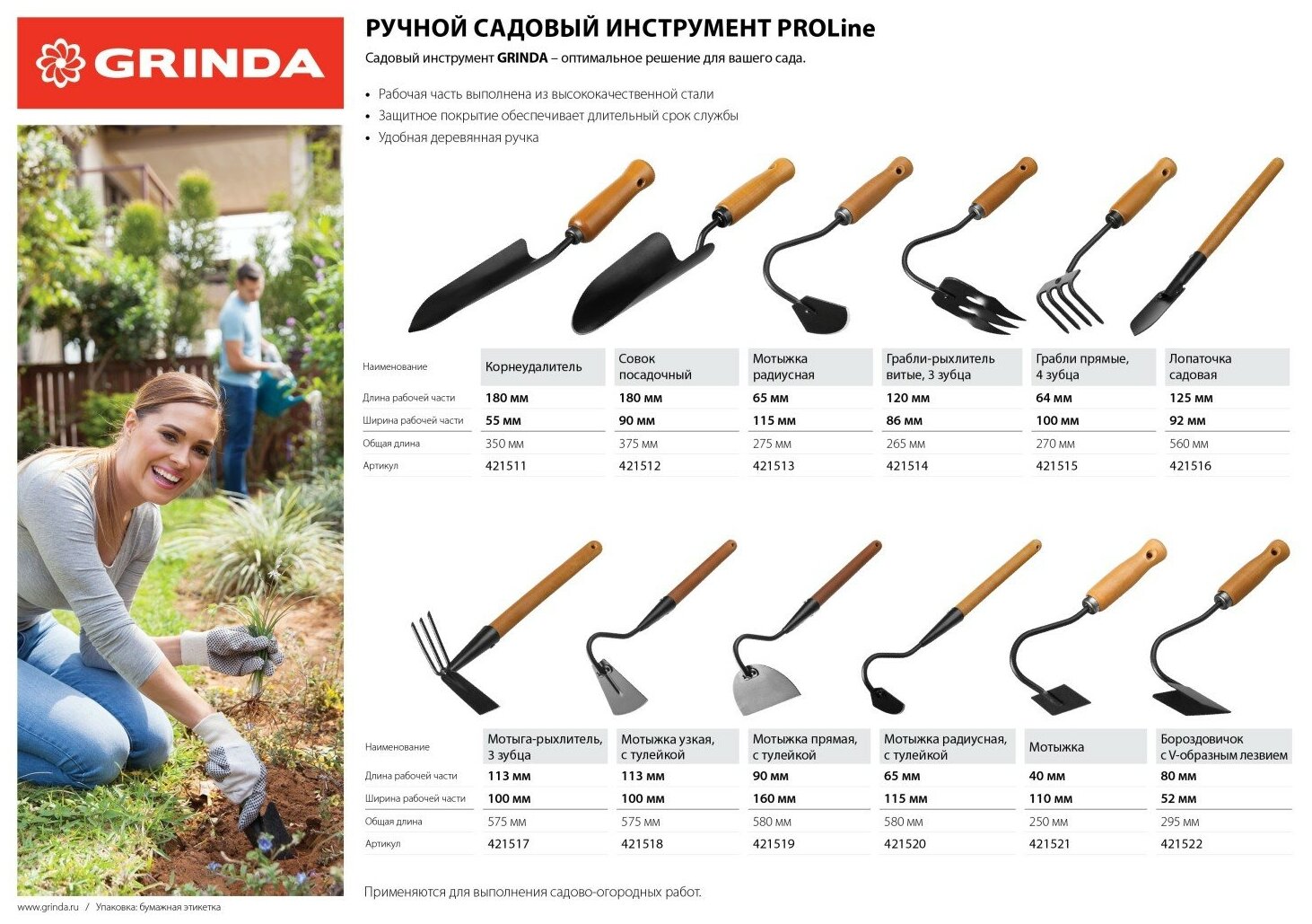 СохранитьКорнеудалитель PROLine с деревянной ручкой, GRINDA 421511 интересное: