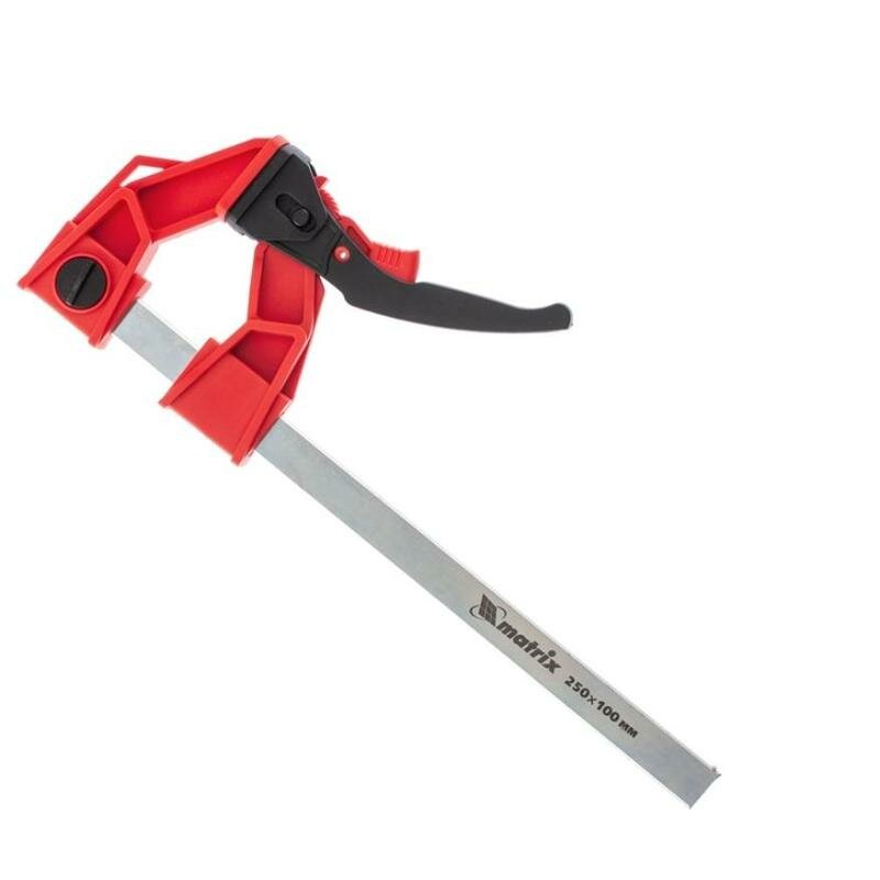 Струбцина реечная быстрозажимная усиленная пластиковый корпус рычажно-храповой механизм 250 х 100 х 401 мм штанга 5 х 22 мм Matrix 20727