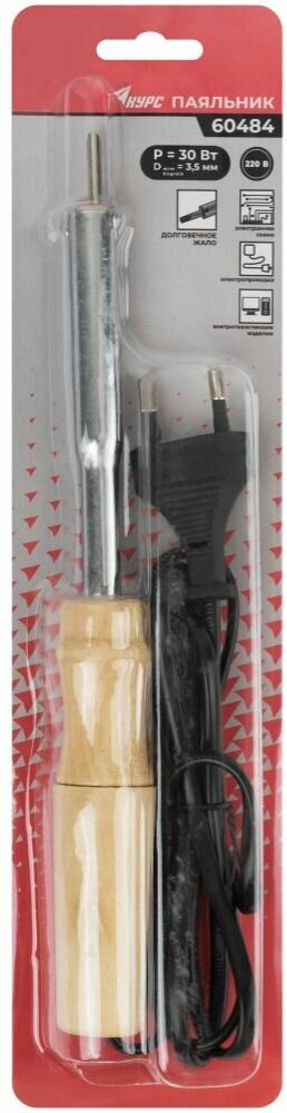 Купить Курс Паяльник 220 В, деревянная ручка, плоское жало D=5,8 мм, 60 Вт, 60486