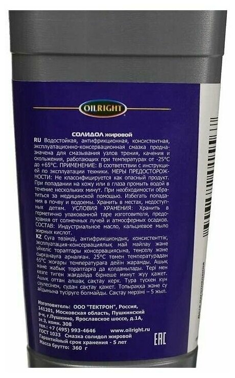 Смазка Солидол Ж 360гр "OILRIGHT"