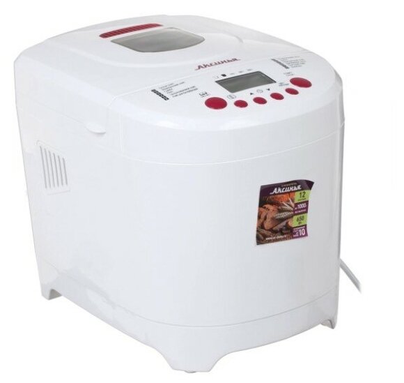 Купить Хлебопечь аксинья КС-5500 белый с бордовым 650Вт, 12 программ, вес буханки 1000гр.