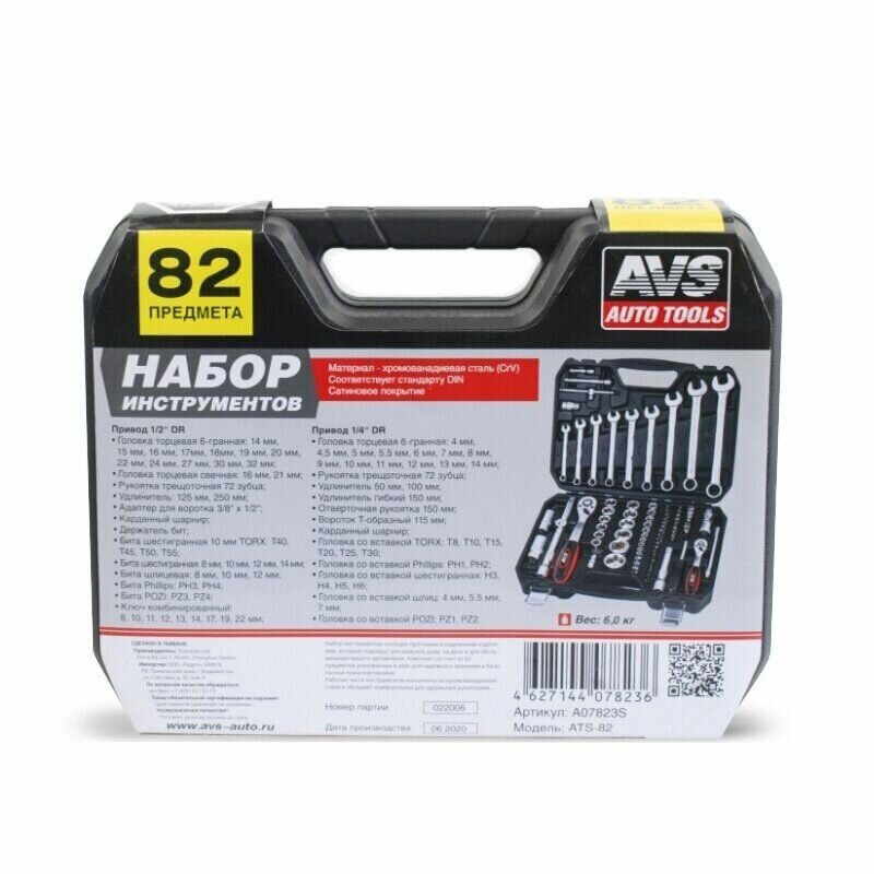 Набор инструментов 82 предмета, AVS ATS-82 (A07823S)