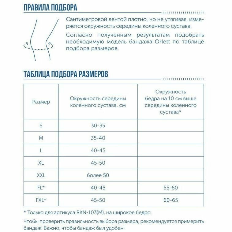 Orlett Бандаж на коленный сустав RKN-103(M), размер XL, черный