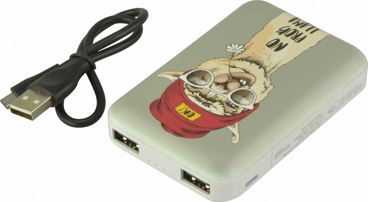 ЗУ RITMIX RPB-10007 Lama, Li-pol, 10000mAh, 2.1А, 2×USB, 1x MicroUSB, Защита от: короткого замыкания/перегрузки/перегрева (1/40)