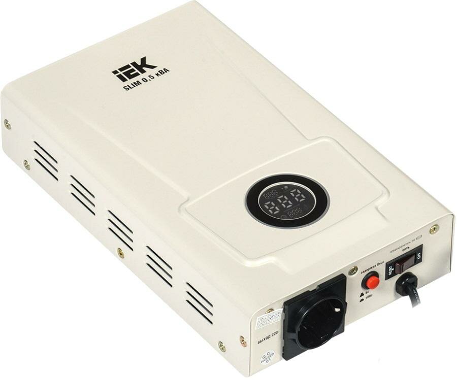 Стабилизатор напряжения однофазный IEK Slim 0.5кВА (IVS22-1-D05-09) белый