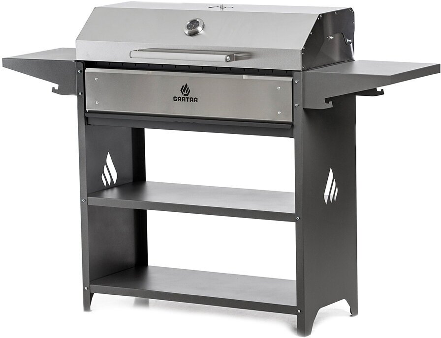 Гриль - мангал стационарный, с термометром, с зольником, с нержавеющей накладкой, с двумя боковыми и двумя нижними полками GRATAR Professional Optima BBQ POBn 3001