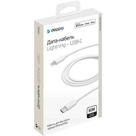 DEPPA 72231 Дата-кабель USB дата-кабель USB-C - LIGHTNING, MFI, 60W, 1.2М, БЕЛ