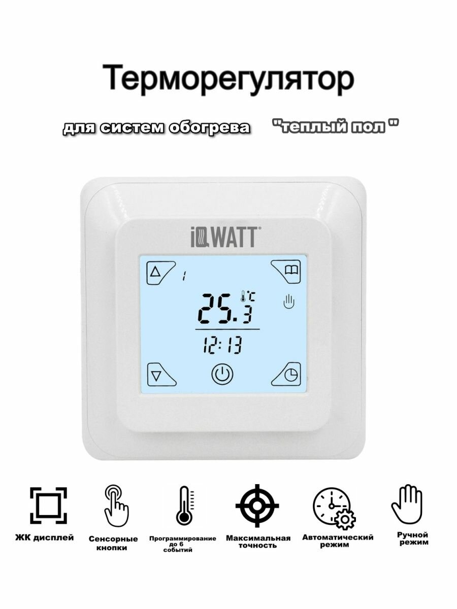 Терморегулятор с ЖК-дисплеем и сенсорными кнопками IQ THERMOSTAT TS (белый)