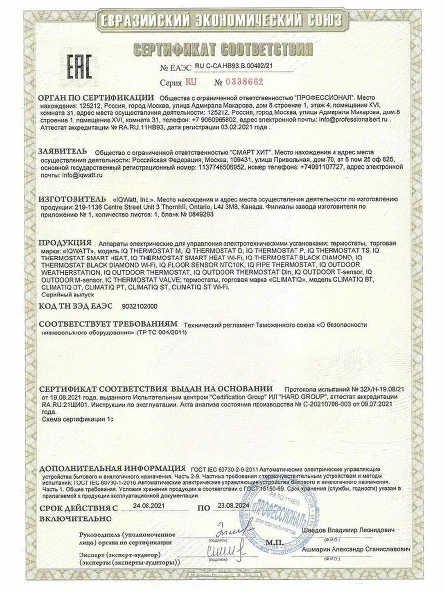 | Подходит для электрического теплого пола | есть |