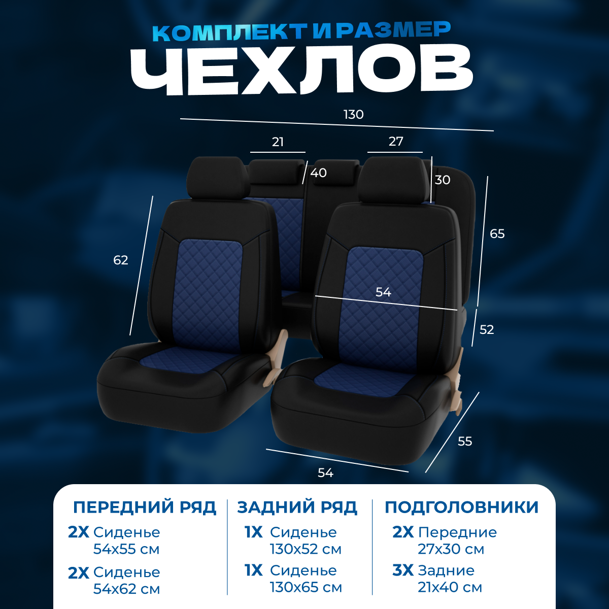 Чехлы PSV Elegant Next TRANSIT (Черный/Ромб синий/отстрочка синяя), ромб + экокожа PSV 136389 | цена за 1 шт