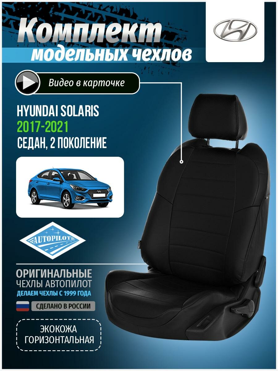 Чехлы для Hyundai Solaris 2 2017-2020 Автопилот Черный Экокожа kha-so-solaris-ii-chch-e