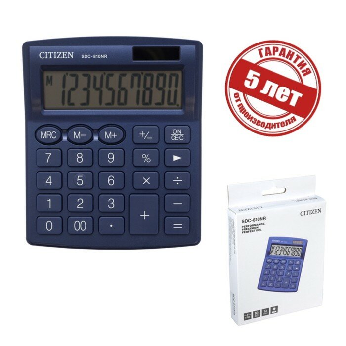 Калькулятор настольный Citizen SDC-810NRNVE (10-разрядный) темно-синий (SDC-810NRNVE)