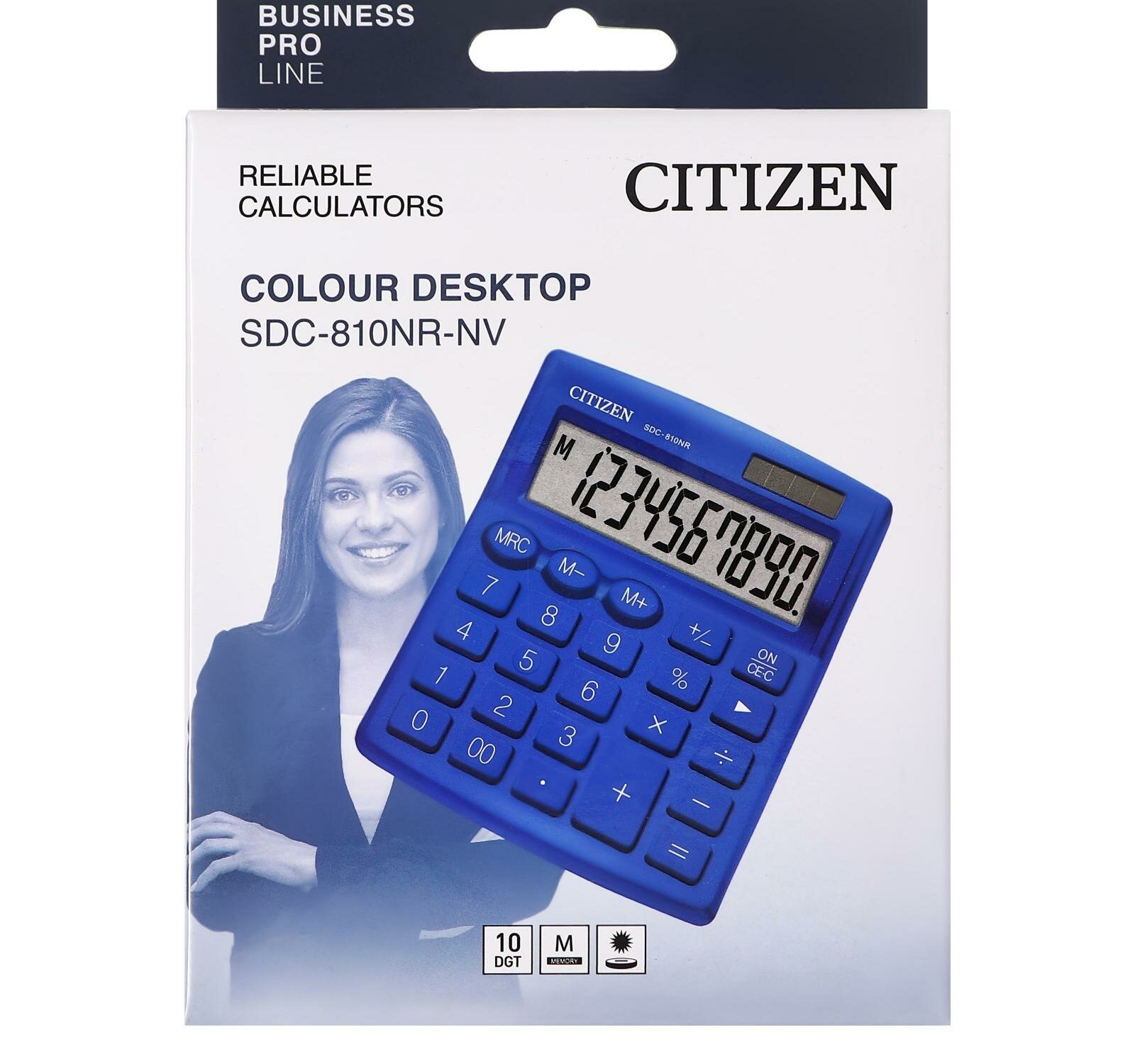 Калькулятор настольный Citizen SDC-810NR-NV, 10 разрядов, двойное питание, 102*124*25мм, темно-синий 4560196212527