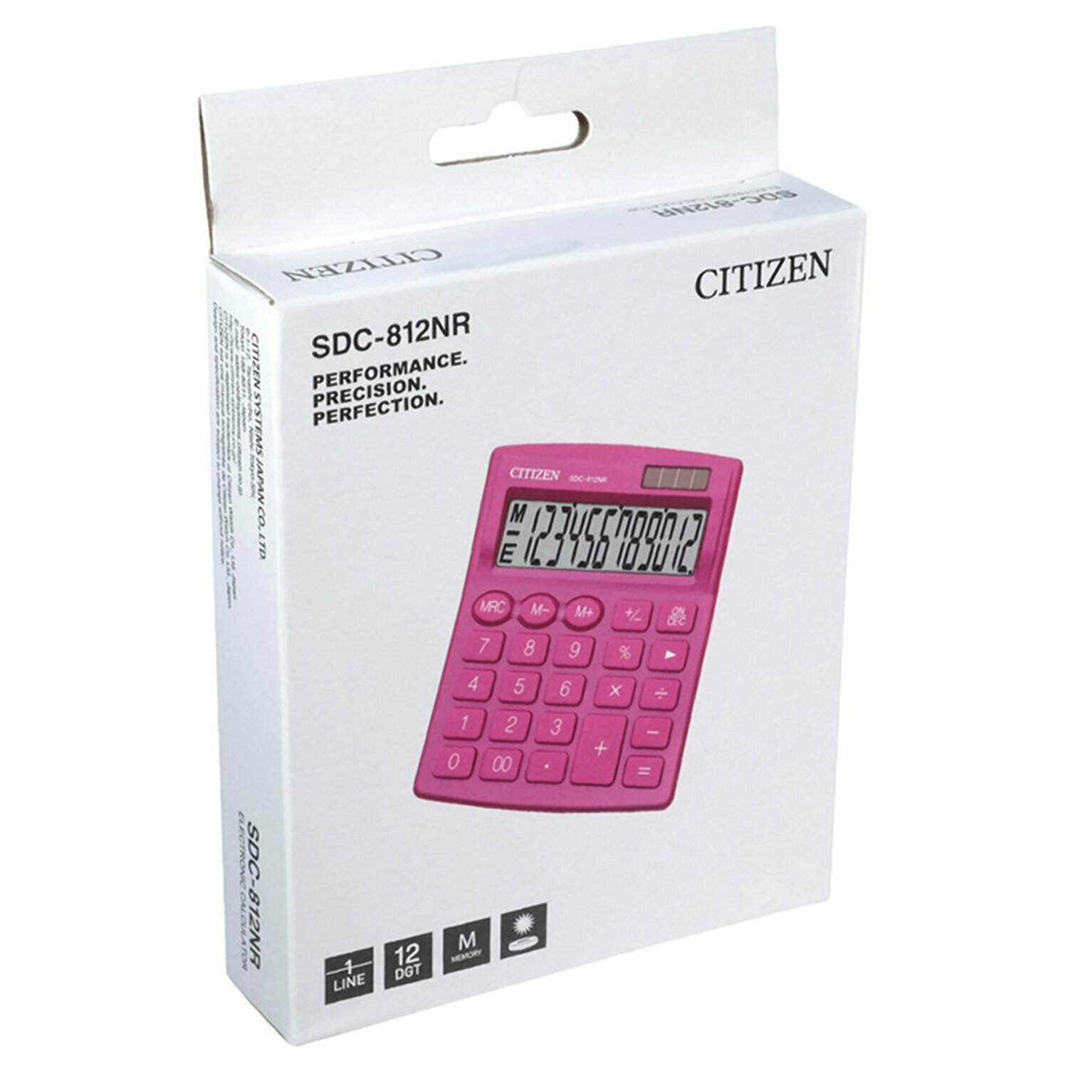 Калькулятор настольный CITIZEN SDC-812NRPKE, компактный (124х102 мм), 12 разрядов, двойное питание, розовый