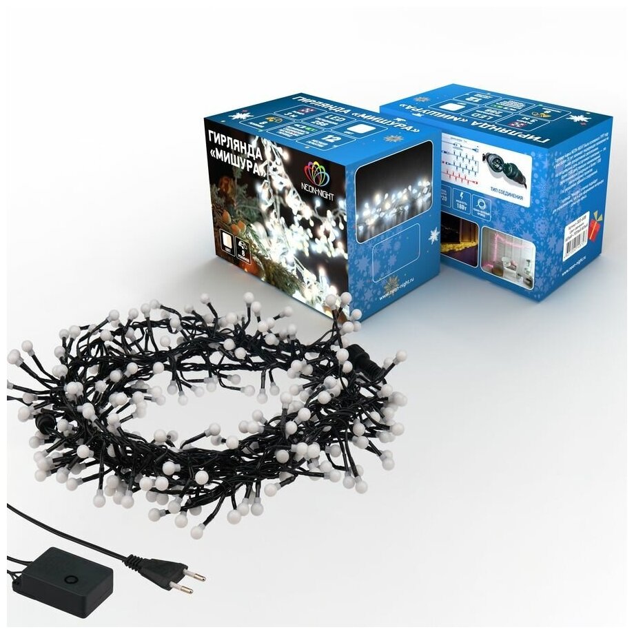 Светодиодная гирлянда NEON-NIGHT "Мишура" 3 м, 8 режимов, 288 светодиодов тёпло-белого и белого свечения