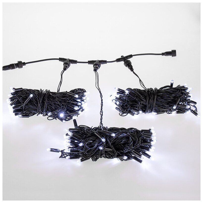 Светодиодная гирлянда Клип-Лайт NEON-NIGHT 3 нити по 10 метров, 198 белых светодиодов, черный провод