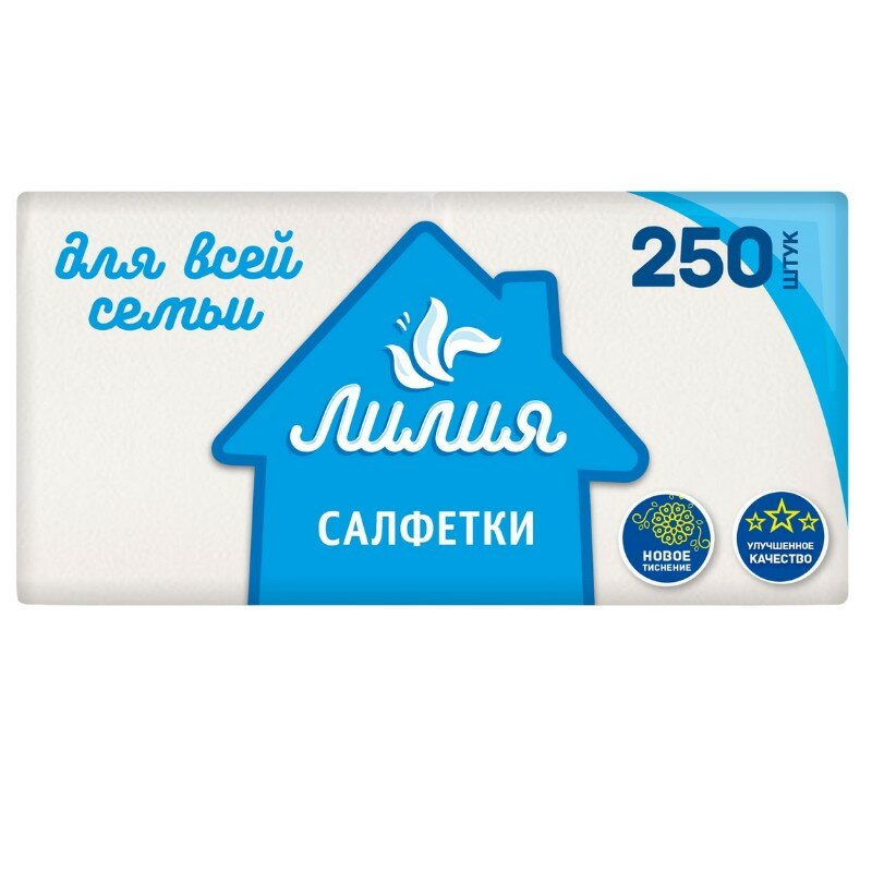 Салфетки Лилия белые однослойные, 250 листов, 1 пачка