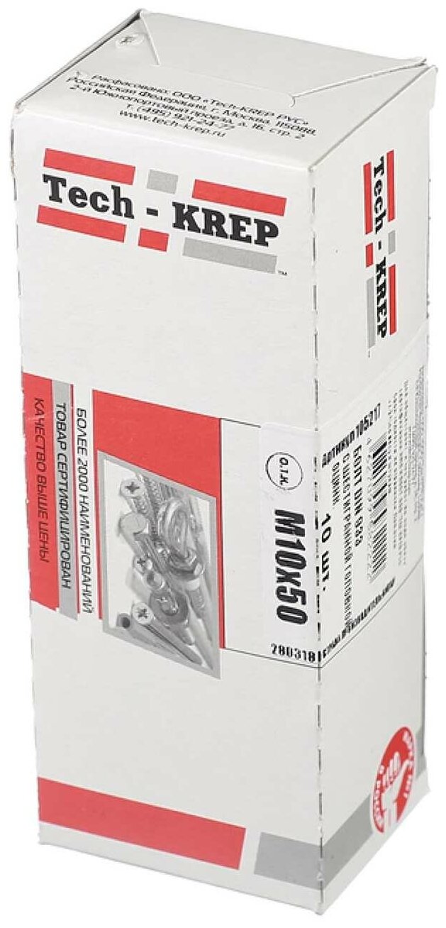 Tech-Krep Болт DIN933 с шестигранной головкой оцинк. М10х50 (10 шт) - коробка с ок. Tech-K 105217 10