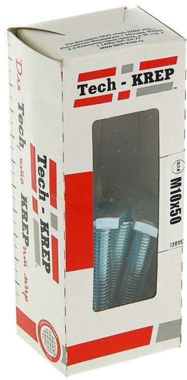 Tech-Krep Болт DIN933 с шестигранной головкой оцинк. М10x50 10 шт - коробка с ок. Tech-K 105217
