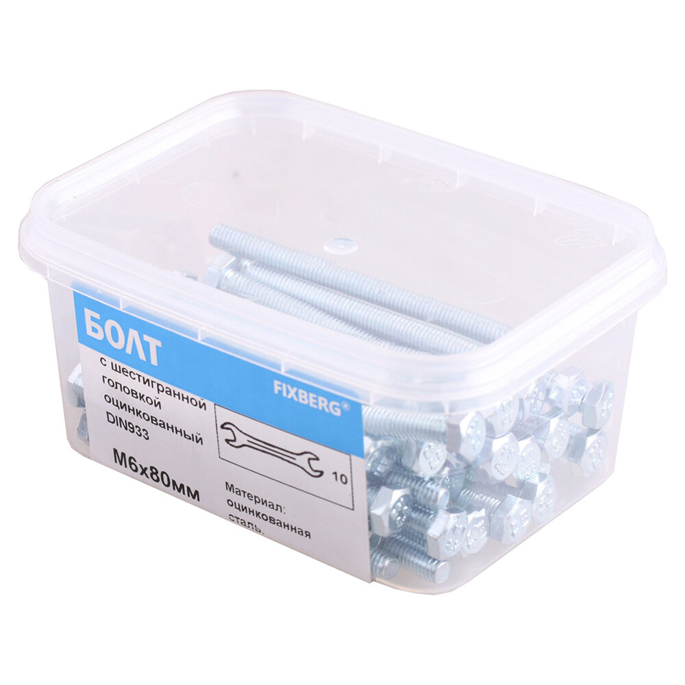 Купить Болт DIN 933 с шестигранной головкой, оцинкованный М6х80, 40шт - коробка Tech-Krep 126504
