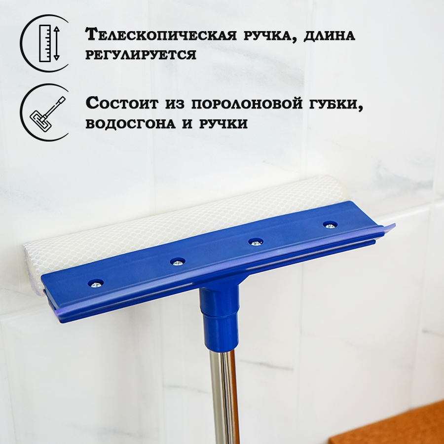 Купить Окномойка Доляна с телескопической стальной ручкой и сгоном, 21*7*48(80) см, поролон (1860192)