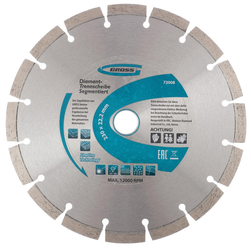 Gross Диск алмазный ф230x22,2мм, лазерная приварка сегментов, сухое резание 73008 .